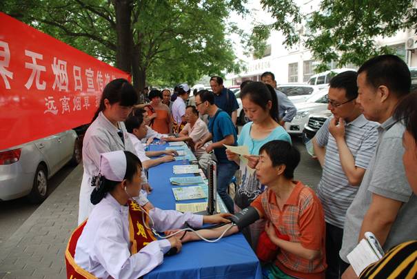 通过张贴海报、发放宣传折页、提供吸烟危害健康咨询义诊服务等形式,向过往群众宣传普及控烟知识。