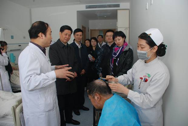 蒋健司长了解中医特色疗法临床使用效果