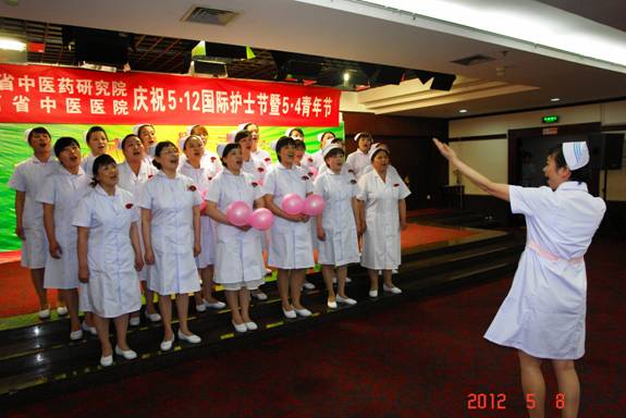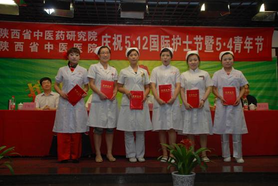 2012年5月8日下午,由护理部和团委共同组织的“护士风采,青春飞扬”——庆祝“5.4”青年节、“5.12”国际护士节暨表彰大会隆重召开。省中医药管理局苏荣彪副局长出席会议并讲话。会议由党委书记、副院长呼燕主持,院长、党委副书记刘勤社致辞。院领导、护士代表、青年职工、医生代表及管理人员200余人欢聚一堂共同庆祝这两个重要的节日。会上表彰了17名优秀护理带教工作者、11名优质护理服务之星。于辉瑤副院长宣读了2012年度表彰优秀护理带教工作者、优质护理服务之星的决定,与会领导为获奖人员颁奖。护士代表孙娇和共青团员代表宋霞在表彰会上作了表态发言。
