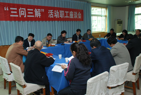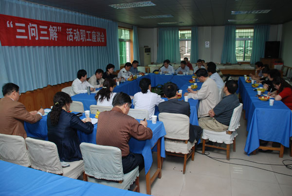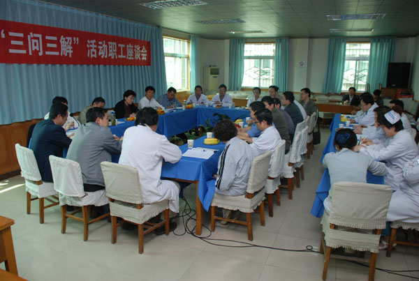 为认真贯彻落实中央、省委关于加强新形势下群众工作,解决群众最关心最直接最现实利益问题的指示精神,切实解决长期以来影响和制约我院科学发展的深层次原因,院党委在广泛征求职工群众、门诊患者及住院病人的意见基础上,在4月份相继召开了机关、医疗、科研三总支“三问三解”活动职工座谈会。党政班子全体成员集体出席了座谈会,认真倾听来自全院医疗、科研、行政管理、后勤服务等各个岗位的职工代表发自内心的真实声音,体现出新一届党政领导班子深入基层摸实情的工作作风和真心实意办实事的坚定决心,先后有80位职工同志参加了座谈会,参会同志本着对工作高度负责的态度,就院里改革和发展畅所欲言,谏言献策。