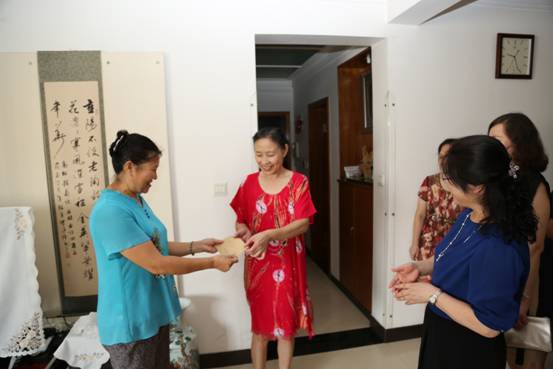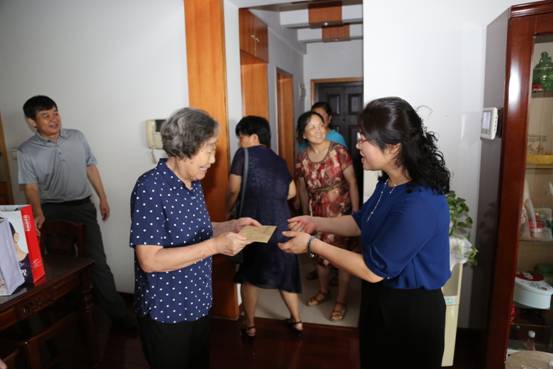 8月21日上午,受院党委委托,党委办公室主任兼行政后勤党总支书记辛玉岚,科研党总支书记刘建峰,医疗党总支副书记陈鸿芳和党委办公室人员一起到11名党员家中走访慰问,送去慰问金和院党委的关怀,祝愿他们身体健康、家庭幸福。