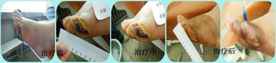 针对不同类型、不同分期的糖尿病足病溃疡,在继承中医传统外治法基础上,分别采用“蚕食、围箍”等方法,促进溃疡愈合。